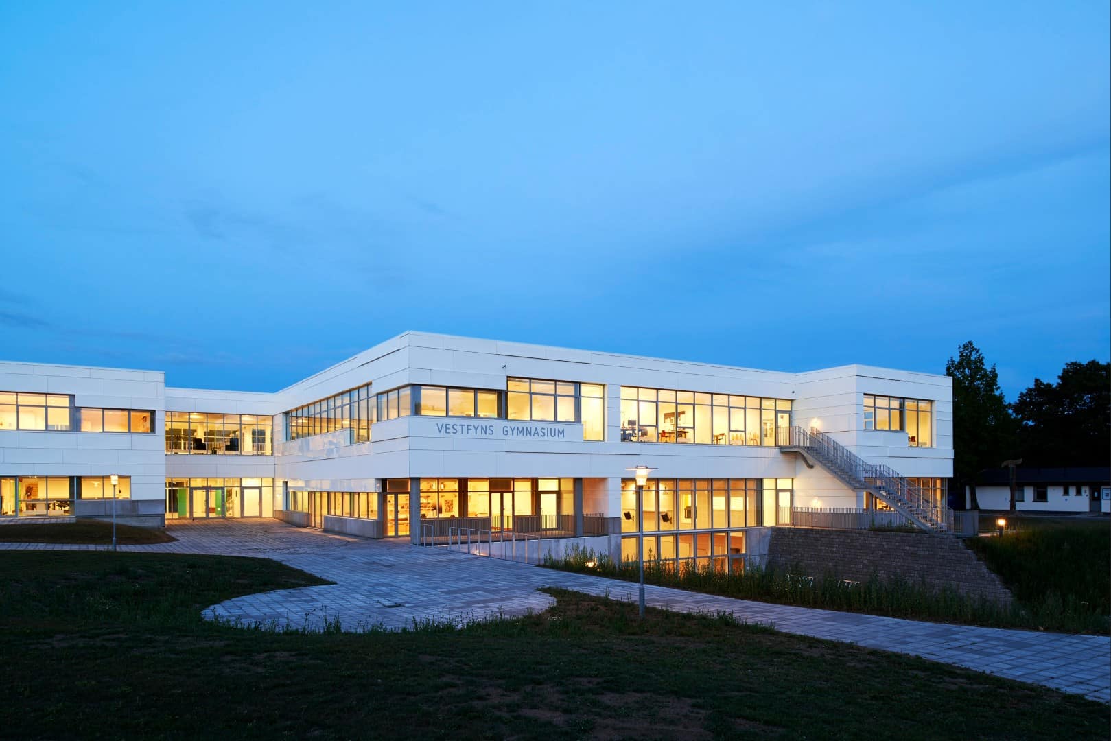 Vestfyns Gymnasium har gennemgået en betydelig udvidelse og modernisering, hvor både nybyggeri og renovering er blevet samlet til ét harmonisk og funktionelt undervisningsmiljø. Projektet omfatter en ny undervisningsfløj på 6.000 m², fordelt på kælder, stueplan og 1. sal, som er sammenbygget med den eksisterende bygningsmasse. Hertil kommer en renovering af yderligere 1.500 m², så den ældre del af gymnasiet i dag fremstår som en naturlig forlængelse af den nye arkitektur. Samlet set skaber projektet et moderne og velfungerende læringsmiljø, der styrker gymnasiets daglige aktiviteter